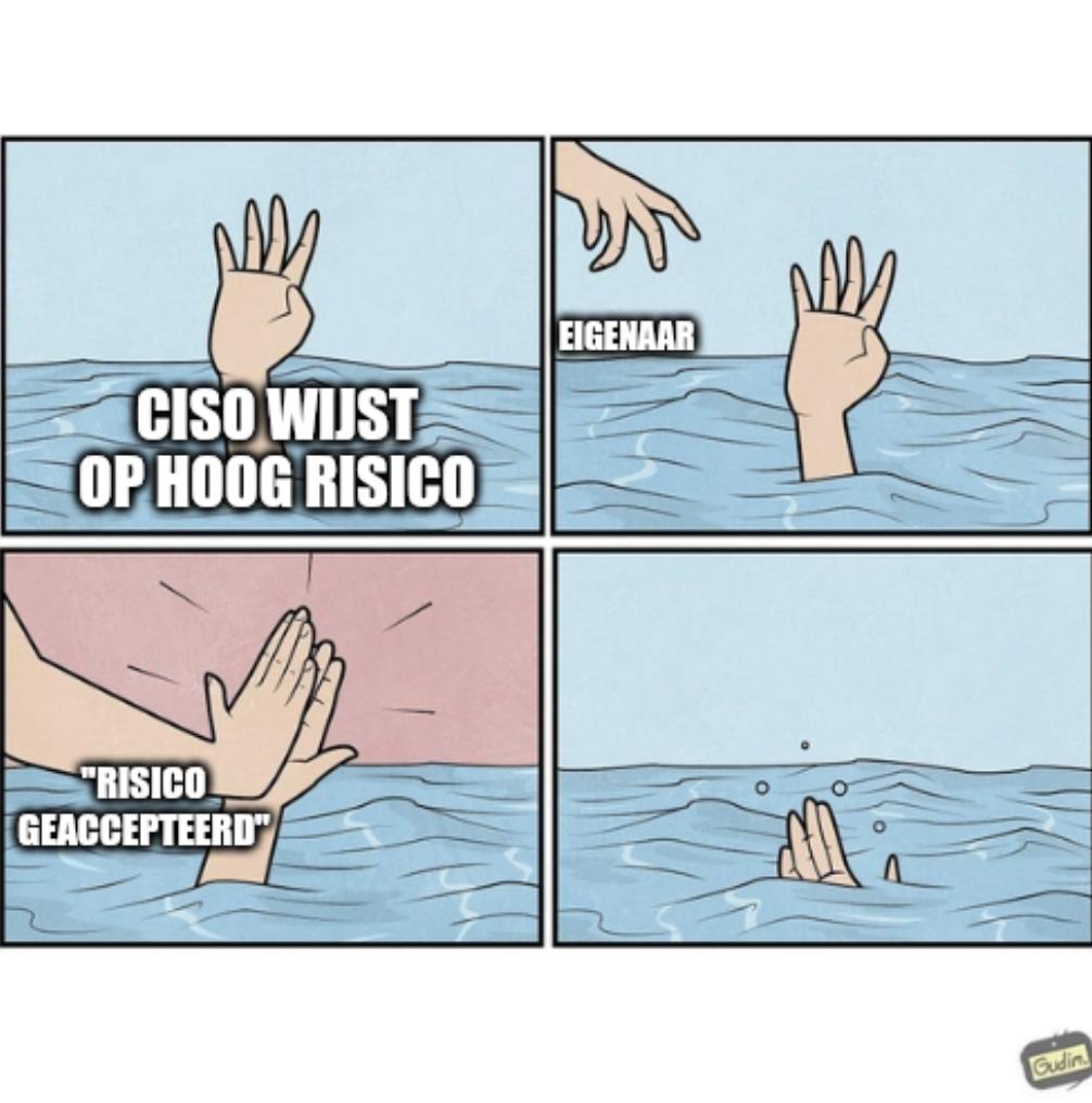 De nieuwste doorbraak is dat je de risico’s in kaart brengt en daarna je “risk register” gebruikt om die risico’s vervolgens te “accepteren”. Ook weer opgelost!